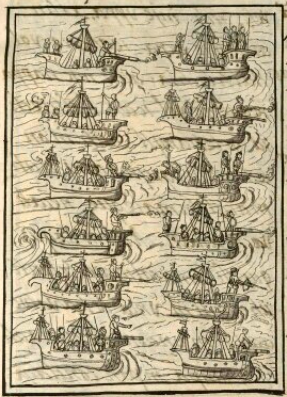 acal(li), a boat, in this case, Spanish brigantines, https://nahuatl.wired-humanities.org/content/acalli