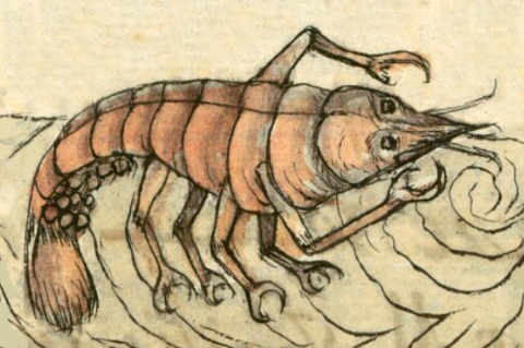 One example of a crayfish appears in this digital collection (as of October 2025), but it is a personal name, Cozol, short for cozolin, another term for crayfish.