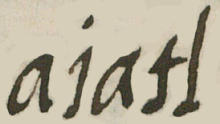 Many examples of ayatl in this digital collection show involve flags or banners, but it is not really clear that the ayate fabric was used for making flags. The flags could easily be phonetic indicators for the -pan locative. Like the tilmatli (cloak) the ayatl often has its top corners pulled upward, which may reinforce that purpose.