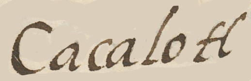 The cacalotl appears in a place name in the Codex Mendoza and in personal names from the Matrícula de Huexotzinco. It can appear as a whole bird or just a head.