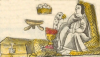 This painting of the simplex glyph for the term caja cuahuitl (wooden chest) shows a frontal view of just that. The chest is brown with stair-step feet and a gray metal lock. Such chests usually had a lock with three keys, and the top members of the Indigenous cabildo (town council) would hold the keys and have to come together to open the chest, Tribute funds were often stored in these chests.