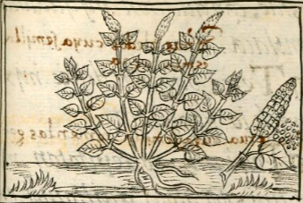 This iconographic example, featuring a black and white sketch of a chia seed plant (here called “chien or chian”), is included in this digital collection for the purpose of making comparisons with related hieroglyphs. The term selected for this example comes from the text near the image in the Digital Florentine Codex. There is no gloss, per se. This example shows a leafy plant with visible roots and seed pods at the top of four of the five small branches. To the viewer’s right of the plant is an enlargement of a seed pod and, to the right of that, a cluster of about 18 chia seeds. Chia seeds produce an edible oil and are made into a beverage.