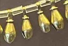 This is a detail of a long string of gold bells from the Mixtec culture, roughly contemporaneous with the Aztec culture, was found in Tomb 7 at Monte Albán. Added to the tomb in the Postclassic Period, it is now on display at the Museum of Cultures, Santo Domingo, in Oaxaca city. Photograph by Stephanie Wood, 24 January 2026.