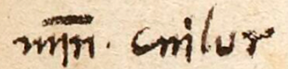 This compound Nahuatl hieroglyph is a black-line drawing of the personal name Cuilol, attested here as man’s name. It shows what appear to be woven sticks (cuilotl) that may represent a gate (tlazacuilotl). If so, these are phonetic indicators. Above the woven sticks is a rubber (olli) ball with a piece missing, perhaps to distinguish it from a black bean. The ball provides a phonetic syllable (-ol-) for the ending of the name. While the gloss ends in -or, this may represent a substitution of “r” for “l,” two sounds that do overlap in Nahuatl. The letter “r” was not part of the Nahuatl alphabet, but once it was learned from Spanish, the substitution could occur. A simplex glyph for Martin Cuilo (given as Cuillo), showing just the woven sticks, also appears on folio 35 verso. The spelling of the name in that instance may cause doubt about whether this one here is indeed Cuilol. The compound that appears here repeats on folio 37 verso, once again being glossed as Cuilor.