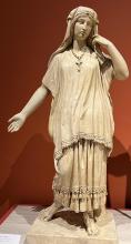 This plaster cast of “Malinche” was made by Manuel Vilar y Roca (b. 1812 in Barcelona d. 1860 in Mexico City). Her hair is long, but her head is covered as though she was going to church. She also wears a Christian cross. While many nineteenth- and twentieth-century Mexicans saw her as a traitor for working as the interpreter for Cortés (as if she had a choice and especially after Independence from Spain), this artist seems to make her into a sympathetic character. Museo Nacional de Arte. Photo by Stephanie Wood, 4 May 2025.