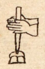 This simplex glyph refers to the drilling of a piece of wood with an arrow to create a fire as a part of the New Fire ceremony (mamalhuaztli), which was something that happened every 52 years in Nahua religious observances. It involves a horizontal piece of wood, as shown here in a terracotta color. It has four black spots (probably holes) on it, perhaps from earlier occasions when fires were drilled. The second spot from the left has an upright yellow arrow (decorated with a wing feather and a down feather) coming up out of one of the holes. Gray and golden smoke curls up from this spot, suggesting that the action is taking place.