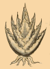 This black-line drawing of the simplex glyph for the personal name Mexi (or Mexih, with the glottal stop) is attested here as a man’s name or ethnic affiliation. It shows a maguey plant (metl), which serves as a phonetic indicator that the name starts with "Me-". The name is meant to elicit is Mexi, another name for Huitzilopochtli, which became the root of the ethnic name for the people who carried him in the migration that resulted in the founding of Mexico-Tenochtitlan. (This is attested in our Online Nahuatl Dictionary, in the entry for Mexi.) The maguey has five spiky and spiny branches (or pencas, in Spanish). No recognizable visual element provides the phonetic -xih of the name.