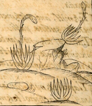 This iconographic example, featuring a type of agave (necuametl), is included in this digital collection for the purpose of making comparisons with related hieroglyphs. The term selected for this example comes from the text near the image in the Digital Florentine Codex. There is no gloss, per se. This example shows a black-line drawing of the necuametl with seven branches and a large stalk rising from the middle. It may have a bud at the top that would eventually blossom. The stalk is spiky, a lot like the tzihuactli. This necuametl is placed in a landscape setting that includes some shading, both features pointing to European stylistic influences. The personal name Necuametl was held by illustrious ancestors, as shown in our Online Nahuatl Dictionary.