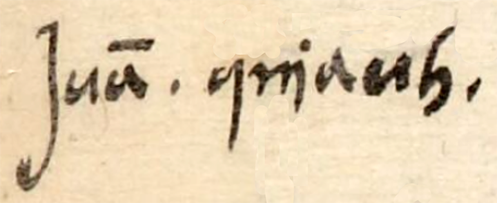 This simplex Nahuatl hieroglyph is a black-line drawing of the personal name Quiyauh (“Rain,” apocopated from quiyahuitl), attested here as a man’s name. It shows three short streams of water, each one with a line of current down the middle and a droplet or bead at the lower tip. The outer lines are especially wavy. The current and the wavy lines give the water a sense of motion.