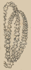 This black-line drawing of the simplex glyph for the personal name or title, Tecpanecatl (perhaps, “Person Associated with the Tecpancalli, or Palace”), is attested here as a man’s name. The glyph shows a bird’s eye view of a circle of blossoms crossed by what may be a reed/cane or a stick, to which the flower wreath is tied. This object might have a semantic association with the tecpan (palace). Much remains to be deciphered in this glyph.