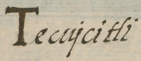 The only other visual of what is apparently a tecuicitli in this collection (as of October 2025) is the Nahuatl hieroglyph of the personal name Tecuici. The glyph does not look much like a crab, however. Another personal name, this time for crayfish (Cozol, from cozolin), also seems to lack the pincers.