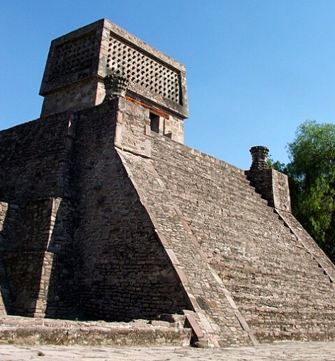 This would likely have been called a teocalli. It is a reconstructed temple in Tenayuca, state of Mexico. Photo, by AlejandroPZ, is in Wikimedia Commons.
