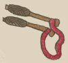 One of the examples of a teponaztli from the Codex Mendoza shows it sitting on a round, twisted reed base (possibly called a yahualli). Another shows a ladder-like structure (see the huehuetzotzonqui). This might have an earlier origin, given the many ladder-like structures in Nahua glyphs, such as the cacaxtli, ecahuaztli, and huacalli, among others. (Examples of these can be searched in the Quick Search in this collection.)
