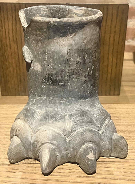 This black-line drawing of the simplex glyph for the personal name Tetepon is attested here as a man's name. While the noun tetepontli typically refers to the knee or lower leg of an animal, this glyph emphasizes an animal claw with sharp nails.