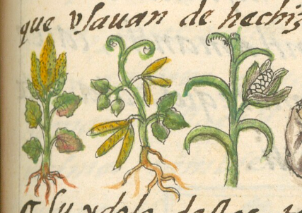 The term tlaolli as expressed in Nahuatl hieroglyphs can appear as a container full of kernels. Thus, when the term tlaolli is used in the text in this particular example, it may be referring to the visible kernels in the painting more than the whole plant. In the Codex Mendoza, on two occasions, the Spanish-language gloss “maíz” appears when kernels are the focus. When the corn cob is the focus, even when the kernels are showing, terms like centli (also spelled cintli), xilotl, elotl, and cacamatl are more typically indicated. Finally, the stalk of maize should be ohuatl or toctli.