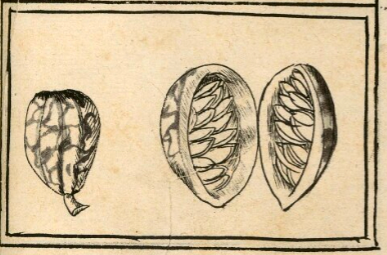 This iconographic example, featuring a black and white sketch of type of squash (tzilacayotli), is included in this digital collection for the purpose of making comparisons with related hieroglyphs. The term selected for this example comes from the text near the image in the Digital Florentine Codex. There is no gloss, per se. This example shows a squash with the stem down. The contextualizing image emphasizes how it is full of seeds.