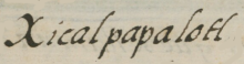 xicalpapalo(tl), a yellow swallowtail butterfly, https://nahuatl.wired-humanities.org/content/xicalpapalotl