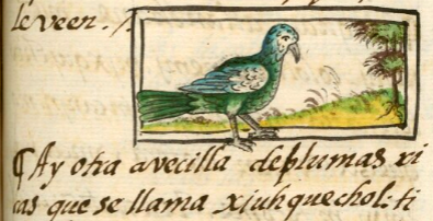 xiuhquechol, a blue-crowned Mexican motmot bird, https://nahuatl.wired-humanities.org/content/xiuhquechol