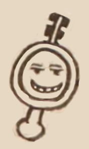 This simplex Nahuatl hieroglyph is a black-line drawing of the personal name Yaotl (probably “Combatant”), attested here as a man’s name. It shows a war shield with a macuahuitl (obsidian-studded club) behind it, which combines as the symbol for warfare. The name Yaotl attests abundantly across regions. The design of this shield is especially notable for the way an earlier design has been turned into a happy face, with human eyes and, here, a mouth with teeth showing. Another Yaotl glyph from the Vergara is similar (see folio 11 recto), but the teeth are not demarcated. Yaotl glyphs from the Matrícula de Huexotzinco have different shields, such as a T-shaped cross and an X-shaped cross, or a turtle-shell pattern. The Yaotl signs from the Beinecke Map and the Codex Mendoza are more like this one, except that the round shield is blank.