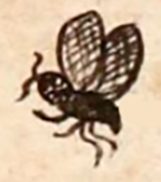 This simplex Nahuatl hieroglyph is a black-line drawing of the personal name Zayol (“A Fly”), attested here as a man’s name. This is a ¾ view of a fly with four visible legs (somewhat bent or curved), two wings, two eyes, and two antennae. The antennae have some curves to them. The oval-shaped wings have a mesh pattern.