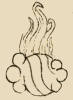 This is an iconographic example of what is possibly a comet, perhaps a "a smoking stone" (popocatica tetl) (an expression found in the Florentine Codex, Book 10, f. 117r, but not referring there to a comet). The stone is the usual oval with curling ends and alternating orange and purple wavy stripes across the center. Hazy, gray smoke curls rise from the stone up to the heavens (a half circle of turquoise blue with a yellow border all along the bottom curve and two white stars in the firmament, one on either side of the smoke curls. Contrary to what the gloss suggests, the stone appears to be falling from the heavens, from the stars, which is what may suggest it is a comet.